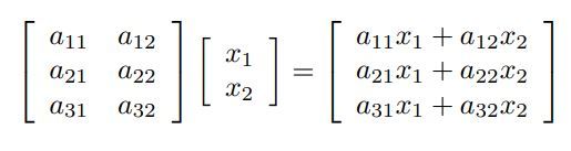 An example of a multiplication of a 3×2 matrix A = [aij] with a 2-dimensional column vector