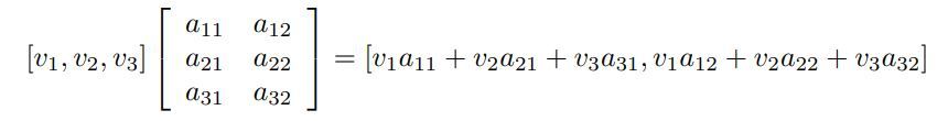 An example of the multiplication of a 3-dimensional row vector v = [v1, v2, v3] with the 3 × 2 matrix A