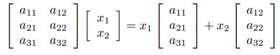 The multiplication of an n×d matrix A with a d-dimensional column vector x to create an n-dimensional column vector Ax is a weighted sum