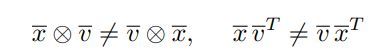 The outer product is not commutative; the order of the operands matters