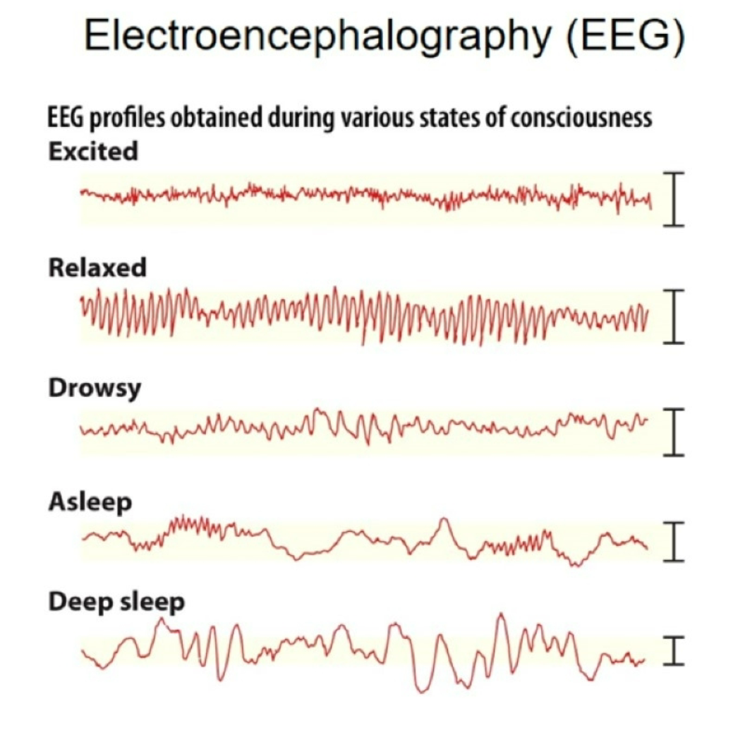 What are the states of consciousness, which are obtained by EEG technique?