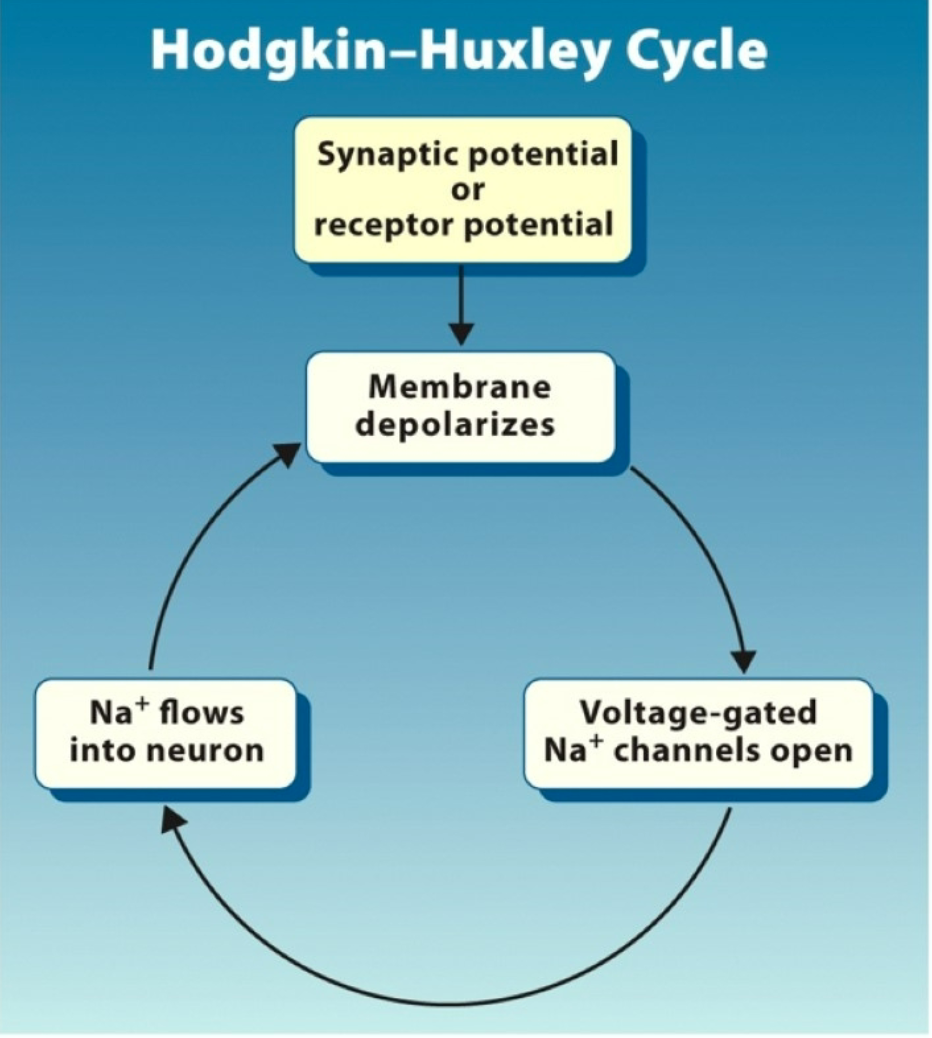 This process is called the Hodgkin– Huxley cycle (Positive feedback system).