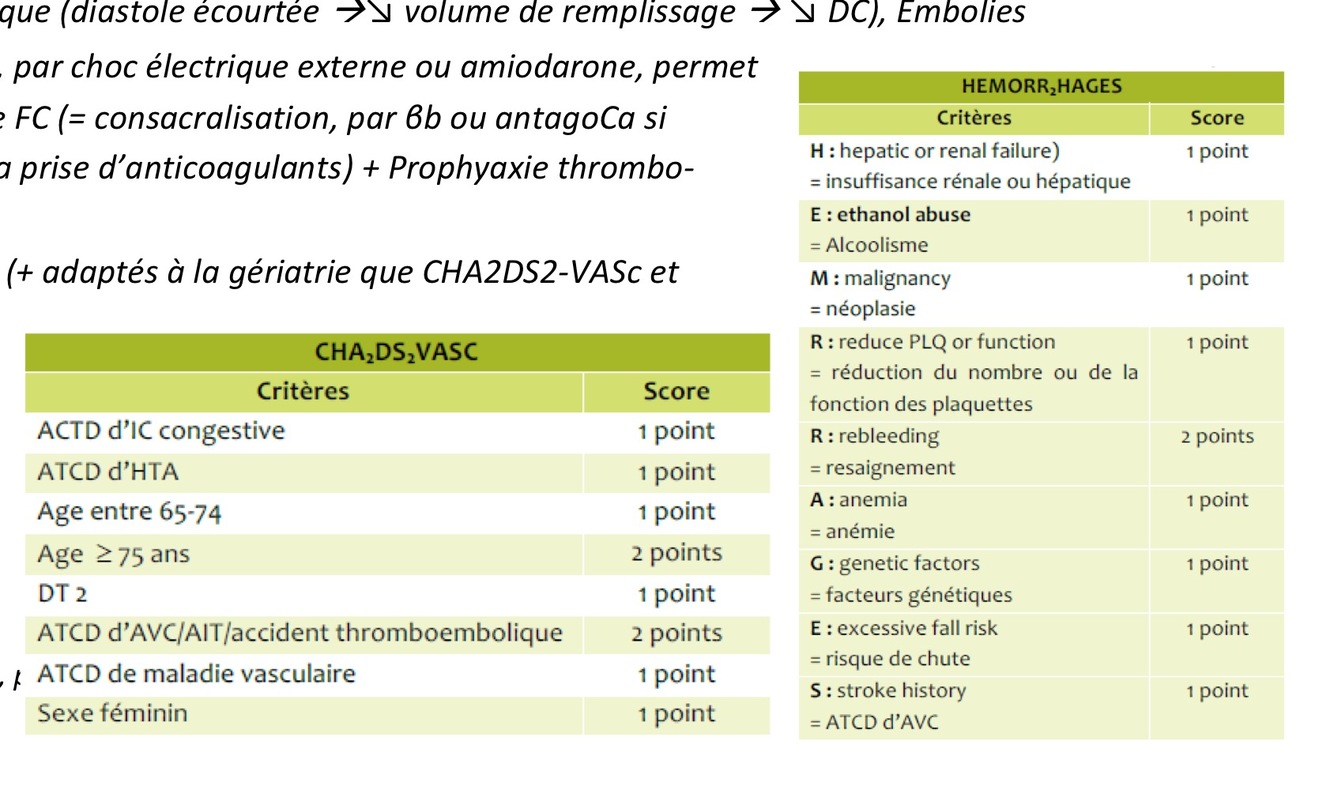 d’éviter les anticoagulants) ou Contrôle FC (= consacralisation, par βb ou antagoCa si rapide, par PCMK si lente, nécessite à la prise d’anticoagulants) + Prophyaxie thrombo- embolique