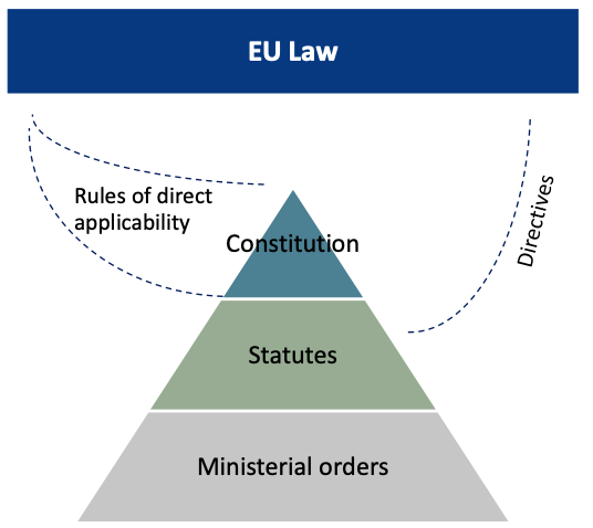 Legal rules stand in a relationship to each other that defines what rule is given priority in any given situation. Generally, a rule of higher rank is given priority to a rule of lower rank.