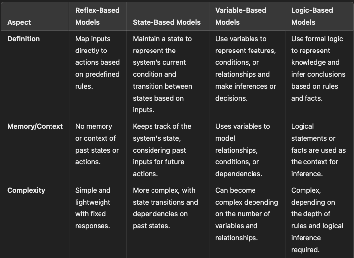 Difference between Reflex, state, variable and logic based model