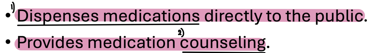 Describe the community pharmacy practice