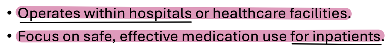 Describe the hospital pharmacy practice