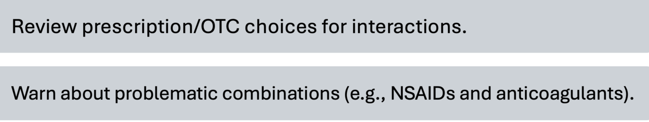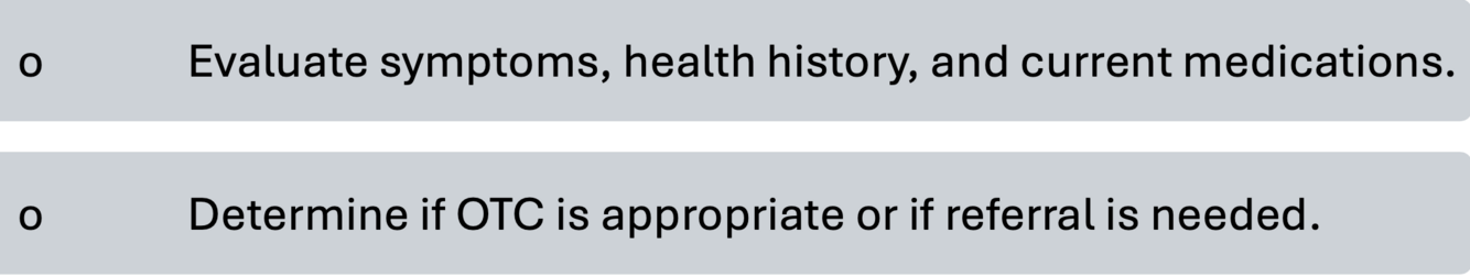 List the pharmacists role in optimizing OTC selection