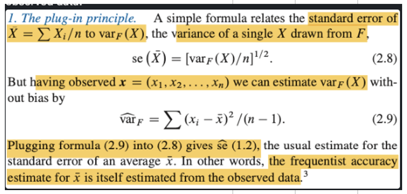 the frequentist accuracy estimate for x-hat is itself estimated from the observed data!