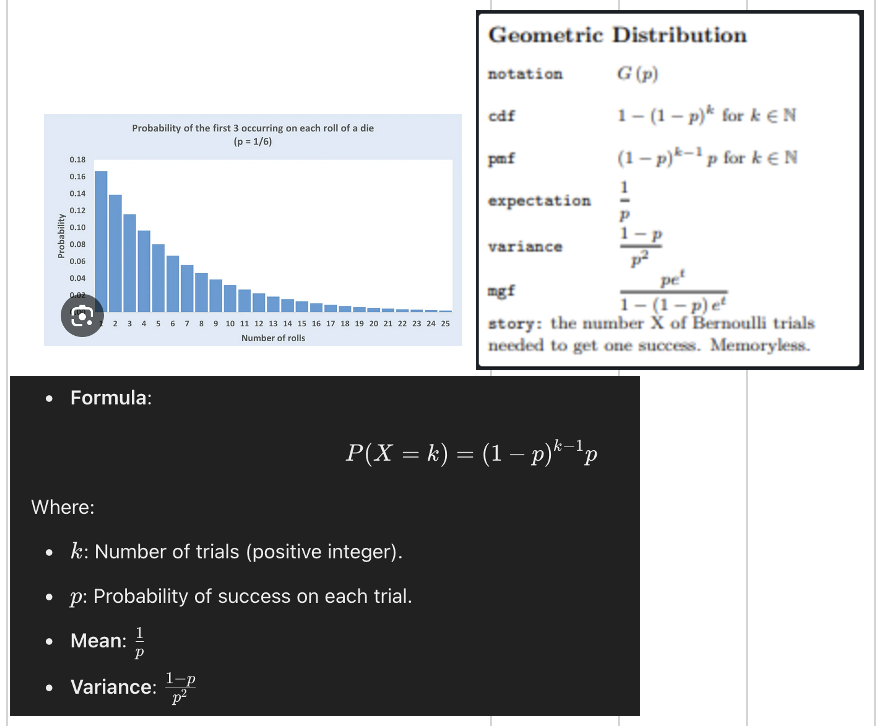 “Definition: A discrete probability distribution that models the number of trials needed to get the first success in a series of independent Bernoulli trials.