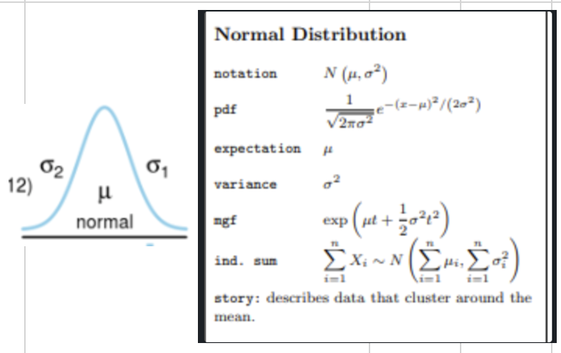 “Definition: A continuous probability distribution that describes data clustered around a mean (μμ) with a symmetric bell-shaped curve.