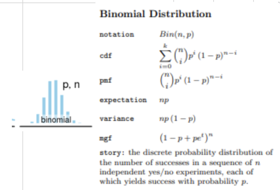 “Definition: A discrete probability distribution that models the number of successes in nn independent Bernoulli trials, each with a constant probability of success pp.