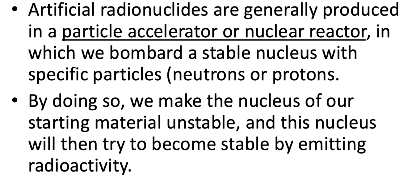 Explain how artificial radionuclides are produced