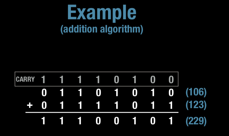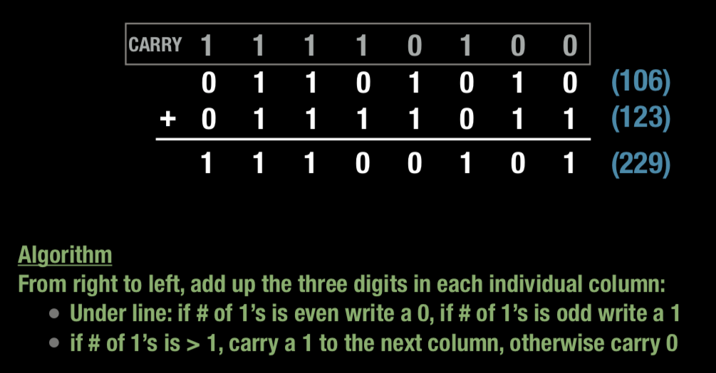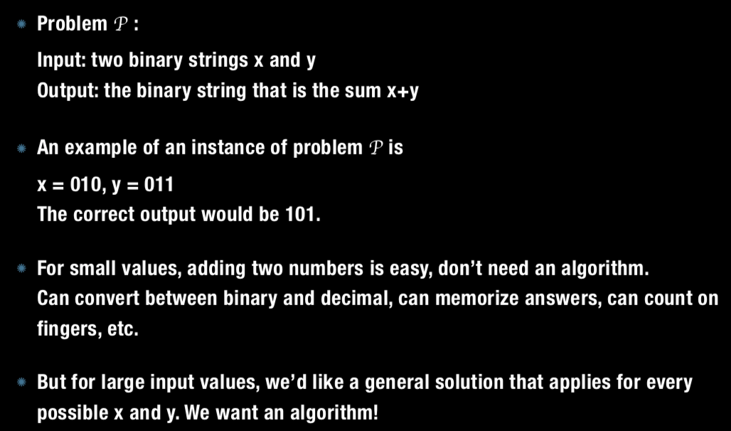 Design an algorithm for the attached example, adding two binary numbers.