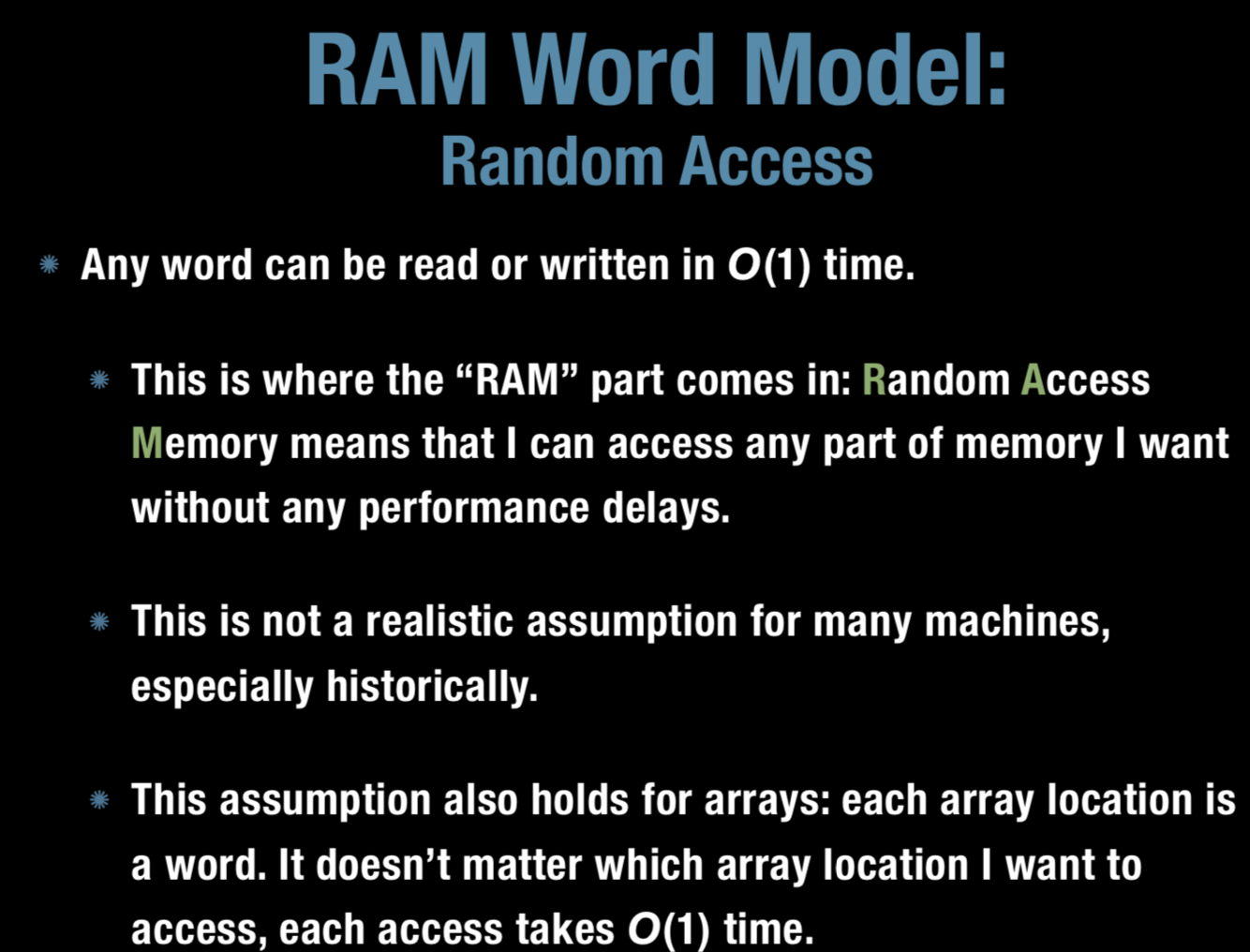 In RAM word model, how is data stored in the machine