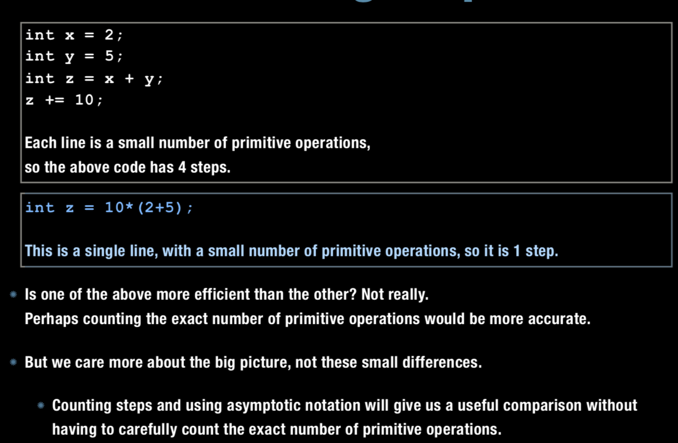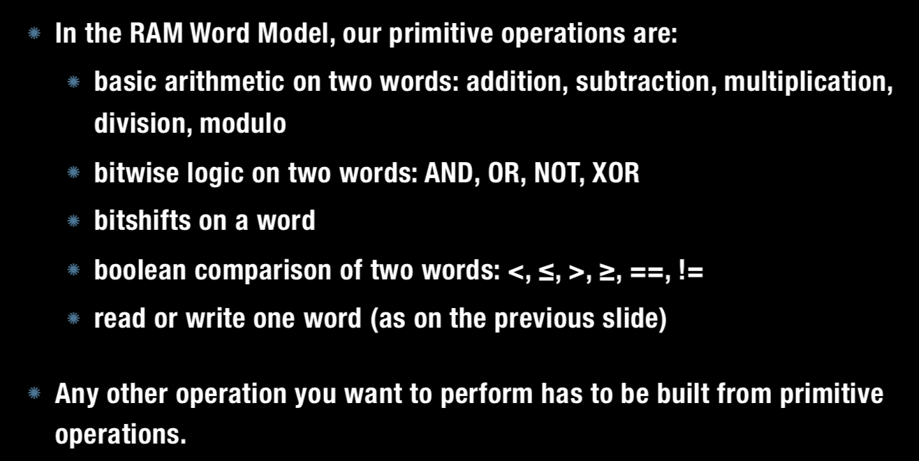 A primitive operation is an instruction that is assumed to take one “CPU step” (i.e., O(1) time, independent on word size u)
