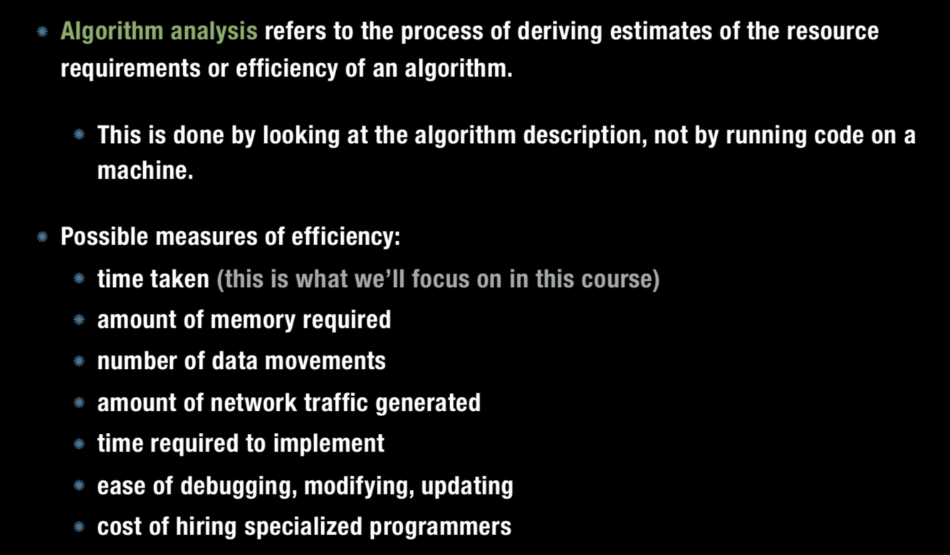 What are the possible measures of an algorithms efficiency?