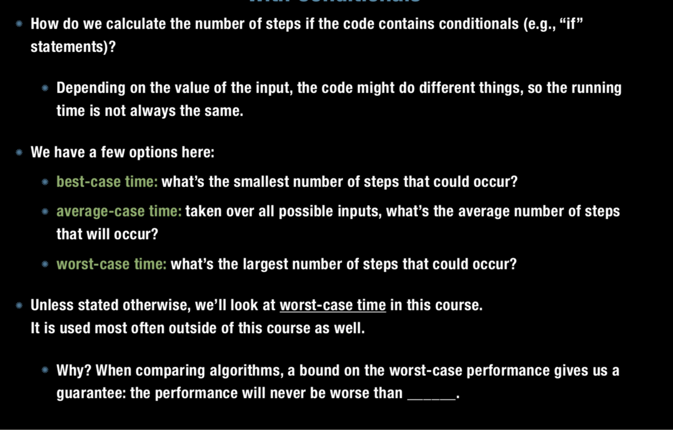 How do we calcylate the number of steps if the code contains conditional statements?