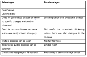 What are the pros and cons of endoscopy?