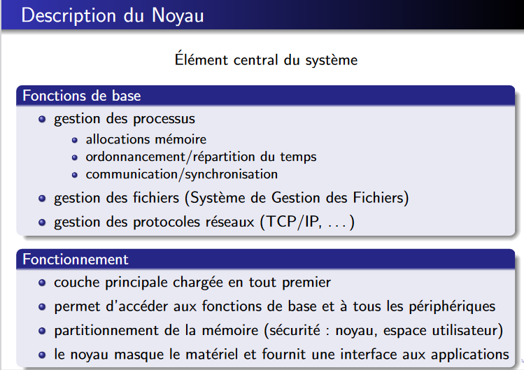 Quelles sont les Fonctions de base d’un noyau?