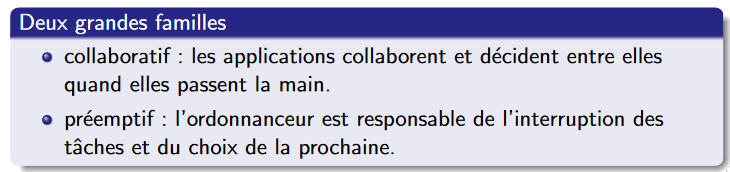 Quelles sont les 2 famille d’ordonnanceur, comment fonctionnent elles?
