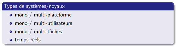 Quels sont les 4 types de systèmes/noyaux ?