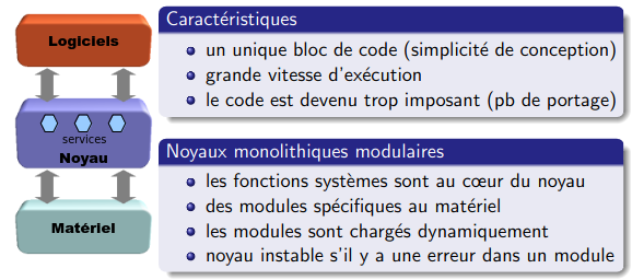 Citer des OS avec noyaux monolithiques