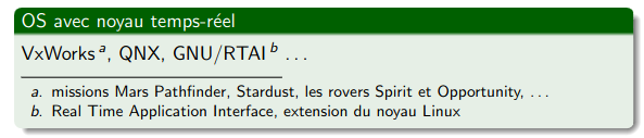 citer un exemple de noyau temp réel