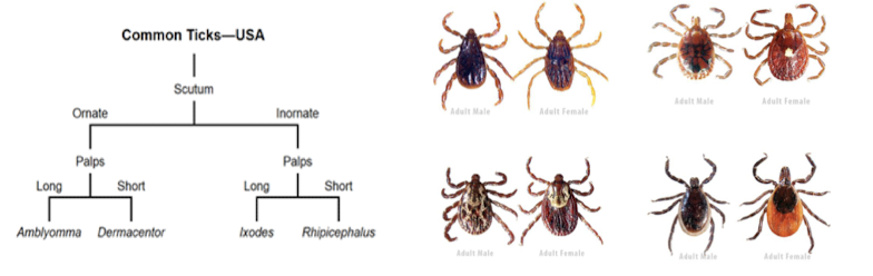 Use the dichotomous key to determine the genus of the ticks