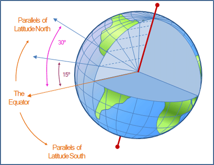 Latitude and longitude are read as degrees, minutes, and decimals of minutes.