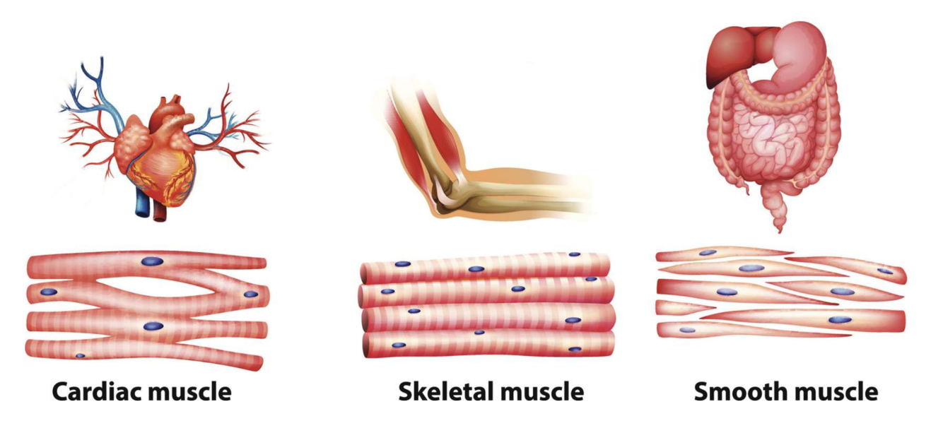 What are the three types of muscle in the body?