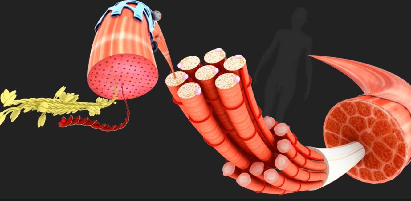 Describe the structure of the skeletal muscle at the microscopic level