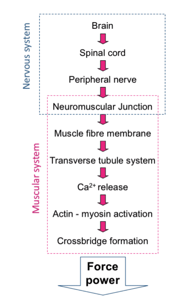 What is the chain of command for muscle contraction to occur?