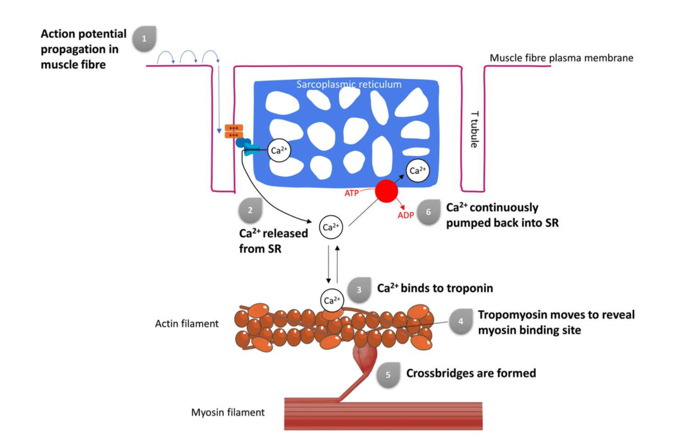 Describe how muscle is activated once the action potential has been generated