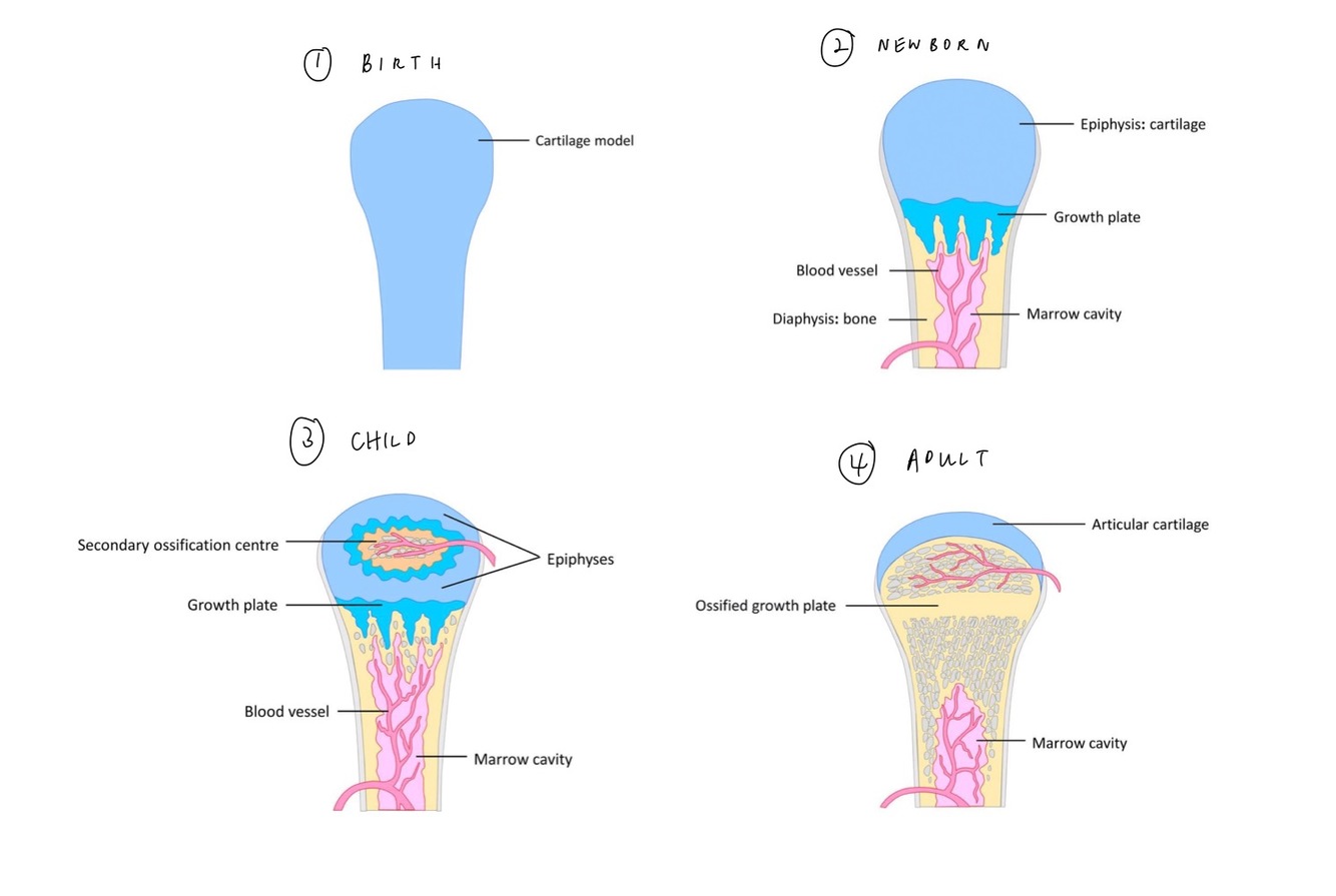Describe the stages of endochondral bone formation