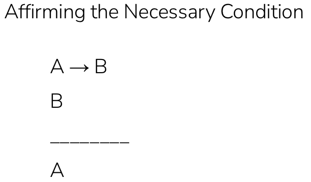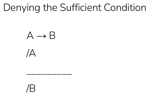 A –> B /A \_\_\_\_\_\_\_\_\_ /B (Denying the Sufficient)