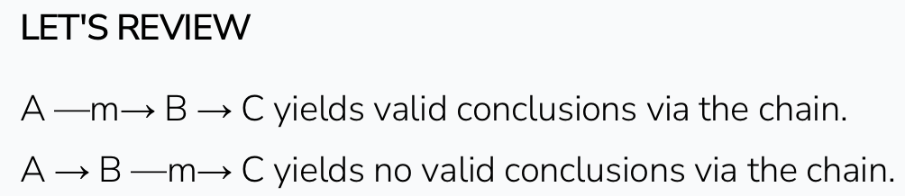 If the ALL arrow shows up first in the chain and then you see the MOST arrow, there are NO VALID conclusions to be drawn via the chain.