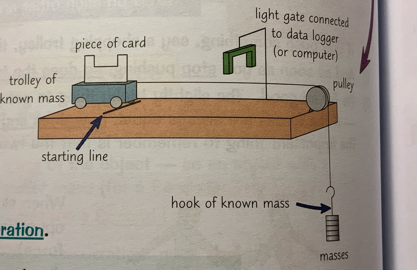 Start with all the masses on the trolly and transfer them onto the hook one by one to increase the accelerating force