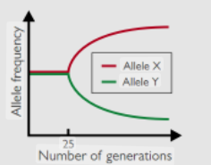 A scientist was studying how an antibiotic affects the frequency of the alleles of gene A in a species of bacteria. She grew the bacteria in her laboratory and after 25 generations, she introduced the antibiotic to the bacterial culture. She sampled the culture at regular intervals throughout the experiment to monitor the frequency of two alleles of gene A. allele X and allele Y. Her results are shown in the graph on the right. Describe what the data is showing.
