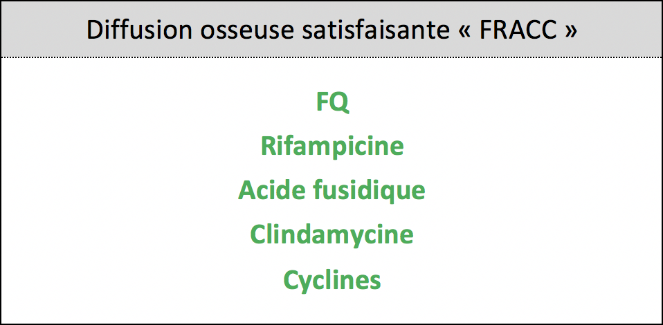 ATB à diffusion osseuse satisfaisante