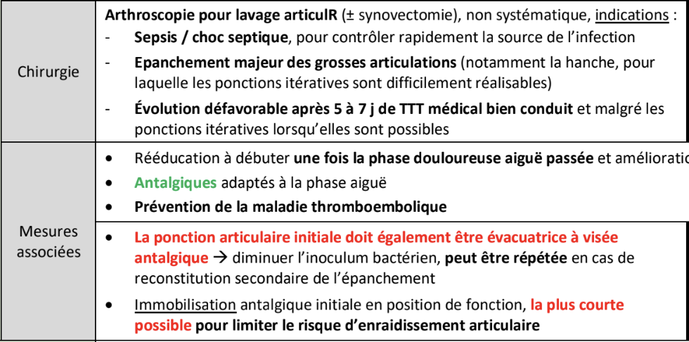 Arthrite septique : chirurgie, mesures associées