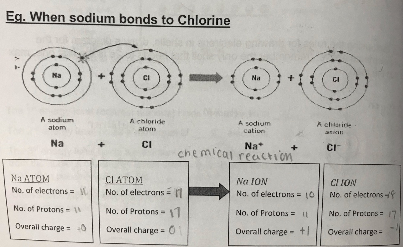 Diagram showing an example of ionic bonding when sodium bonds to chlorine: