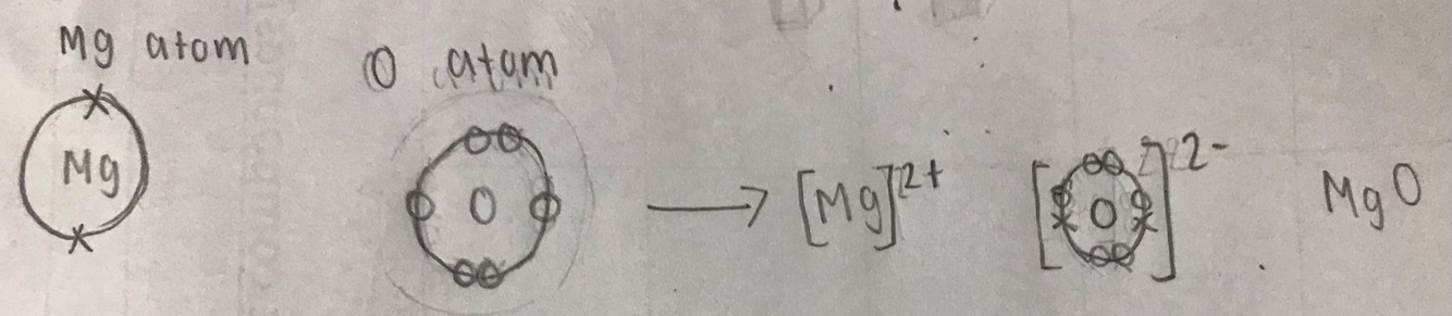 Diagram showing an example of ionic bonding between magnesium and oxygen: