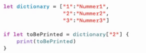 Viser princippet med Optional Unfolding. Her tjekkes det om Optional værdien er tom ved at assigne den til en anden variabel. Kun hvis den ikke er tom, kan værdien printes.