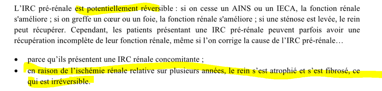 v/f l’irc pré-rénale est tjrs réversible