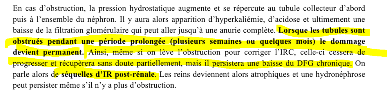 quelqun avec obstruction des voies urinaire depuis 2 mois et irc post-rénale, on leve l’obstruction ,