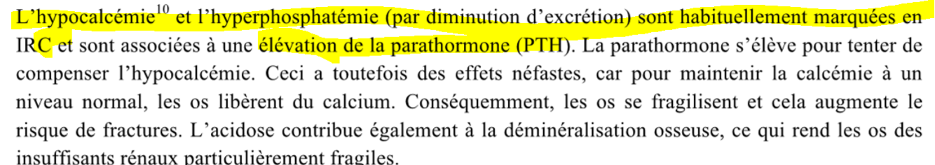 parathormone essaye de compenser le manque de calcium en prenant dans les os;ooo