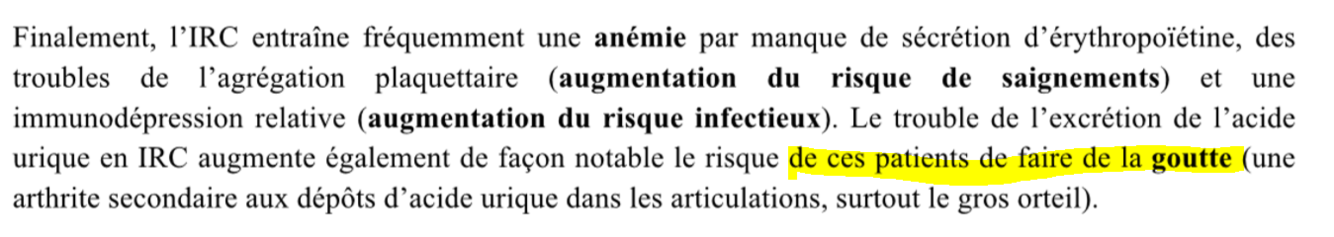 ton patient a mal au gros orteil il a IRC tu pense à quoi?