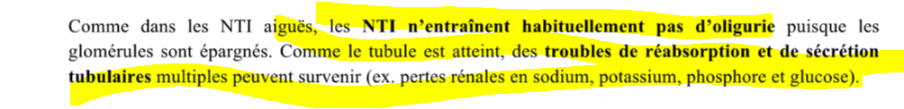 v/f les NTI se manifeste souvent par une très faible qté d’urine produite et des hy0pokaliémie et hypophossphoriémie