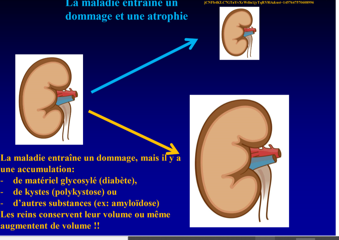 par contre, si avait nephropathie diabétique—) REIN PLUS GROS